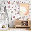 Boho Asimetrik Kalpler Çocuk Odası Duvar Sticker Seti - Uv Baskı Pembe