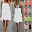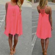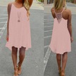 Bol Günlük Kolsuz Spagetti Askılı Mini Plaj Elbiseleri Oymalı Açık Pembe