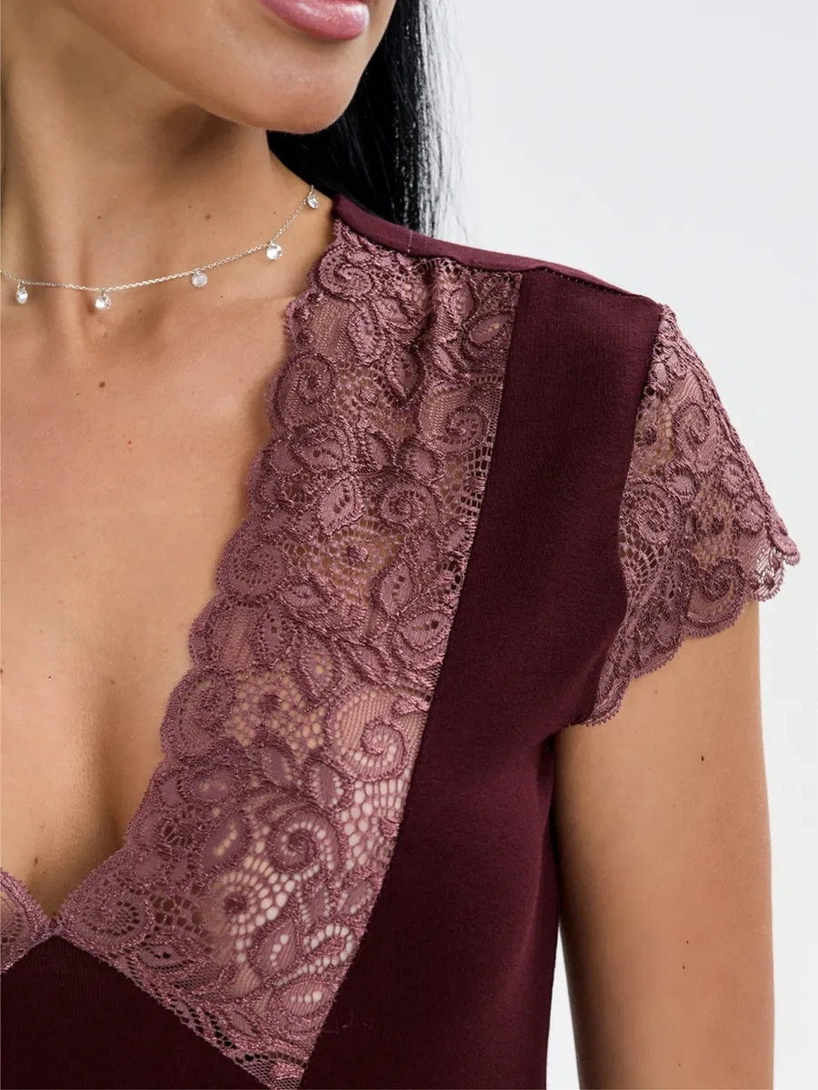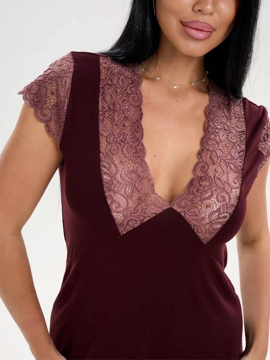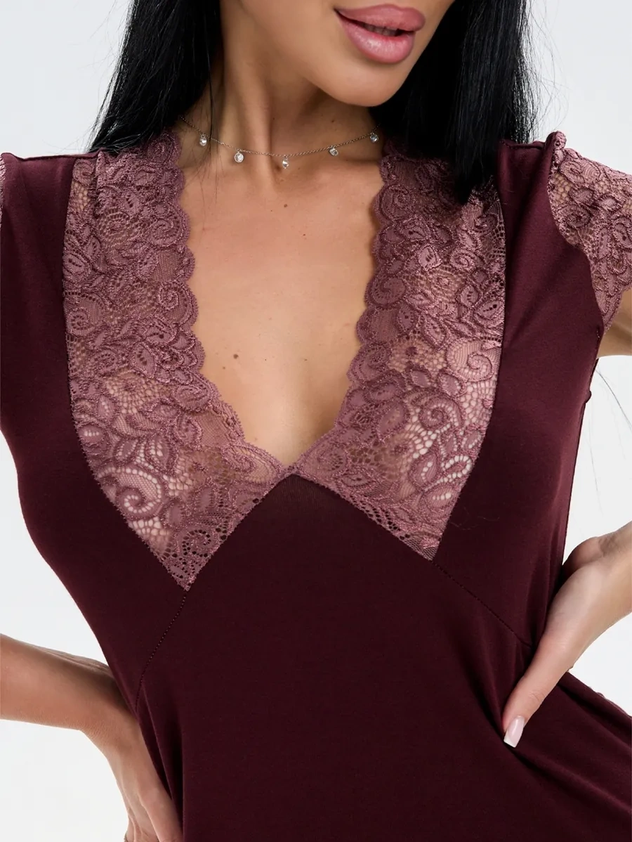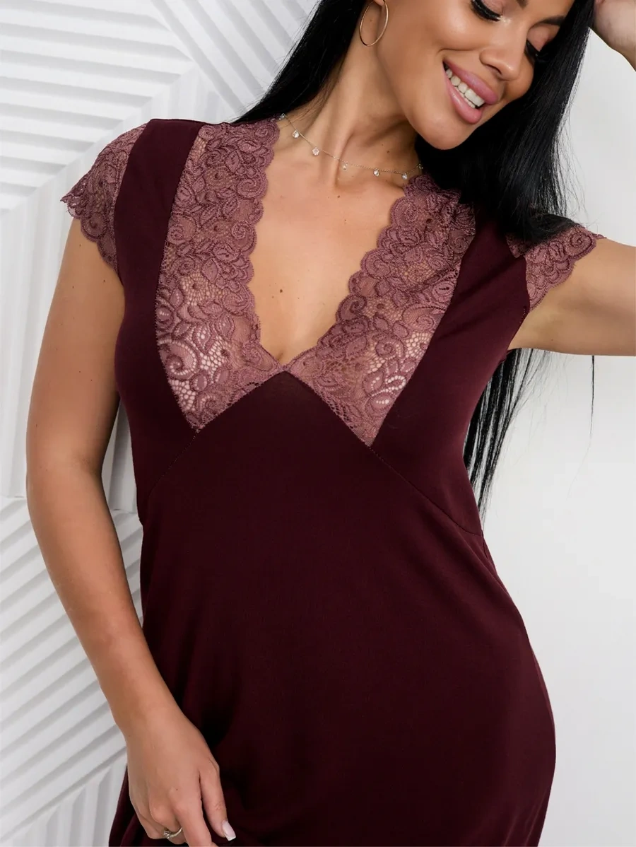 Bol'sie Razmery Sarliz Plus Dantel Detaylı Uzun Viskon Büyük Beden Gece Elbisesi 329640552 Çikolata