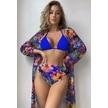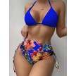 Bölünme Bikini Baskılı İpli Yüksek Bel Mayo Mavi
