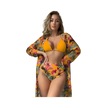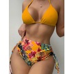 Bölünme Bikini Baskılı İpli Yüksek Bel Mayo Sarı
