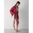 Bordo Flam Keten Kimono Gömlek Bordo