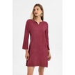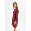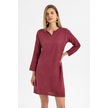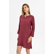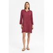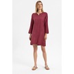 Bordo İşlemeli Uzun Kollu Astarsız Pamuklu Kısa Elbise-bordo