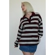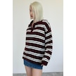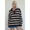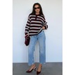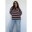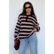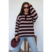 Bordo Polo Yaka Çizgili Kadın Triko Kazak Mg2469 Bordo