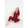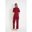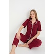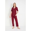 Bordo Renk Biyeli Pamuklu Kısa Kol Pijama Takımı Bordo