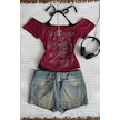 Bordo Skeleton Madonna Yaka Ek Askılı Gotik Y2k Kısa Kollu Full Body Crop-18350 Bordo