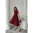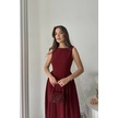 Bordo Yanları Büzgülü Midi Boy Keten Elbise Bordo