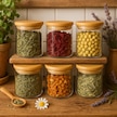 Borosilikat Baharatlık 500 Ml 6 Adet - 90 Mm X 100 Mm -bambu Kapaklı-sızdırmaz Silikonlu Beyaz
