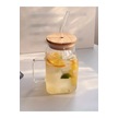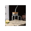 Borosilikat Cam Kupa 650 Ml Bambu Kapaklı Ve Cam Pipetli Isıya Dayanıklı Bardak Şeffaf