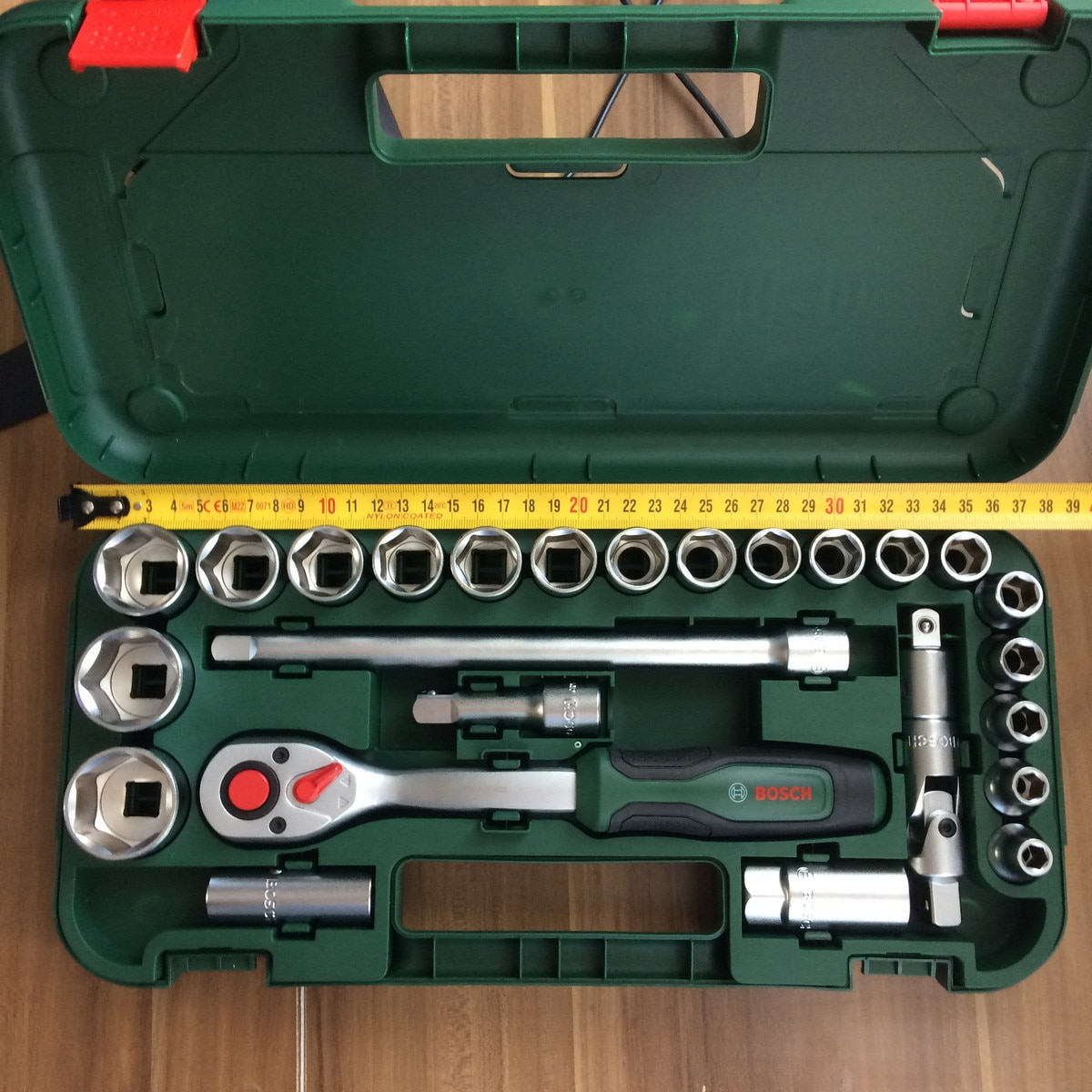Lokma setinin toplam 25 parcasi var. * normal lokma: 8-9-10-11-12-13-14-15-16-17-18-19-20-21-22-24-27-30-32 * derin lokma: 16-21 * 25cm ve 7.5cm uzatma kolu * mafsal * cırcır lokma kolu (uzunluk 26cm, agirlik yaklasik 565 gram) Ben bu seti kuponlarla yaklasik 2200 tl gibi bir fiyata satin aldim. Gercekten bu fiyata cok kaliteli bir set. Ihtiyaciniz varsa hic dusunmeden alabilirsiniz.