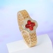 Bosphorusboutique02 Kırmızı 4 Yapraklı Yonca Kadınlık Kuvars Saati, Bayan Hediye, Moda Kırmızı