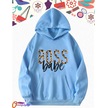 Boss Leopar Kadın Sweatshirt Hoodie Mavi