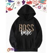 Boss Leopar Kadın Sweatshirt Hoodie Siyah