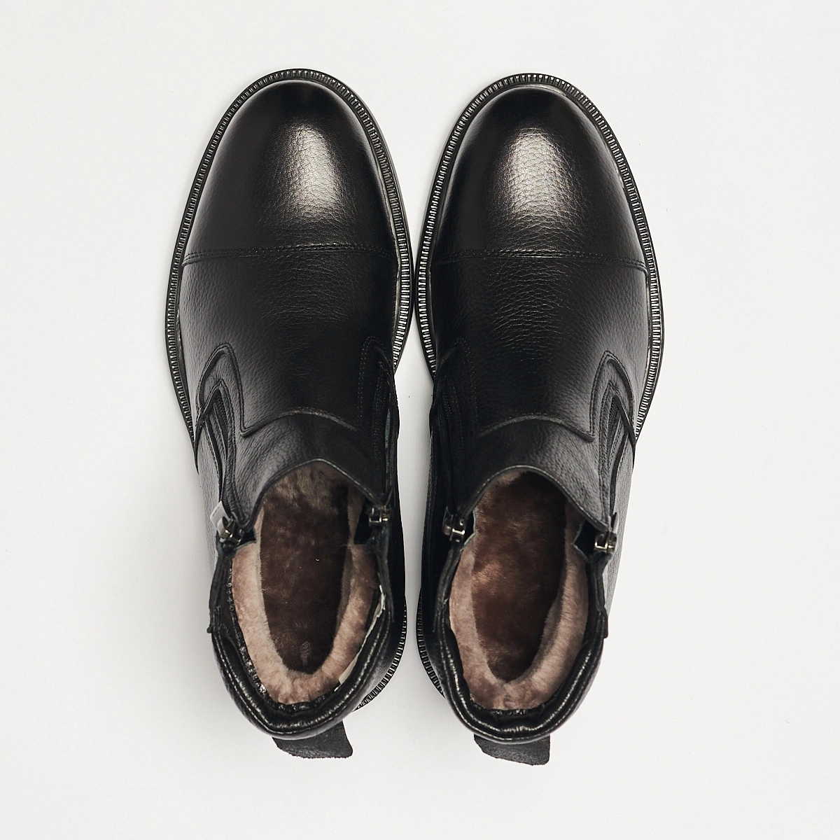 Luttoon 2035 Kürklü Fermuarlı Kaymaz Erkek Bot 001 Füme-Siyah