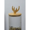 Boynuz Desenli Cam Kavanoz - Bambu Kapaklı Borosilikat Cam Kavanoz - 33 Cm - Yuvarlak