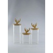 Boynuz Şekilli Bambu Kapaklı Cam Kavanoz Seti - Borosilikat Kavanoz Takımı - 3'lü Set - Kare Bambu