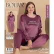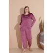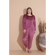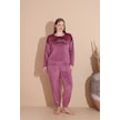 Boyraz Kadın Kışlık Fransız Kadife Büyük Beden Bisiklet Yaka Uzun Kol Pijama Takımı 03147 - 1 Adet Gülkurusu