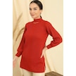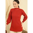 Boyun Dekolteli Saç Örgülü Desen Büyük Beden Spor Tunik Kazak-35198 - Mercan