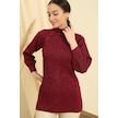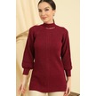Boyun Dekolteli Saç Örgülü Desen Büyük Beden Spor Tunik Kazak-35200 - Mürdüm