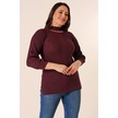 Boyun Dekolteli Saç Örgülü Desen Büyük Beden Spor Tunik Kazak-35211 - Mor