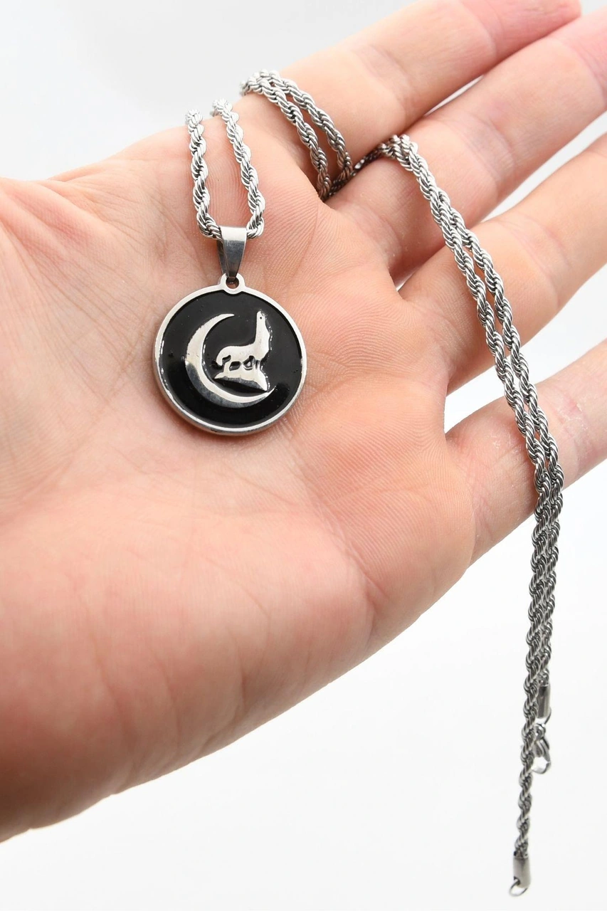 Bozkurt - Kurt Figürlü Kolye Paslanmaz Çelik Zincir 3mm 902302 Gümüş
