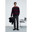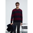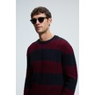 BRAID Erkek Yuvarlak Yaka Saç Örgü Desenli Regular Fit Bordo - Lacivert Kazak