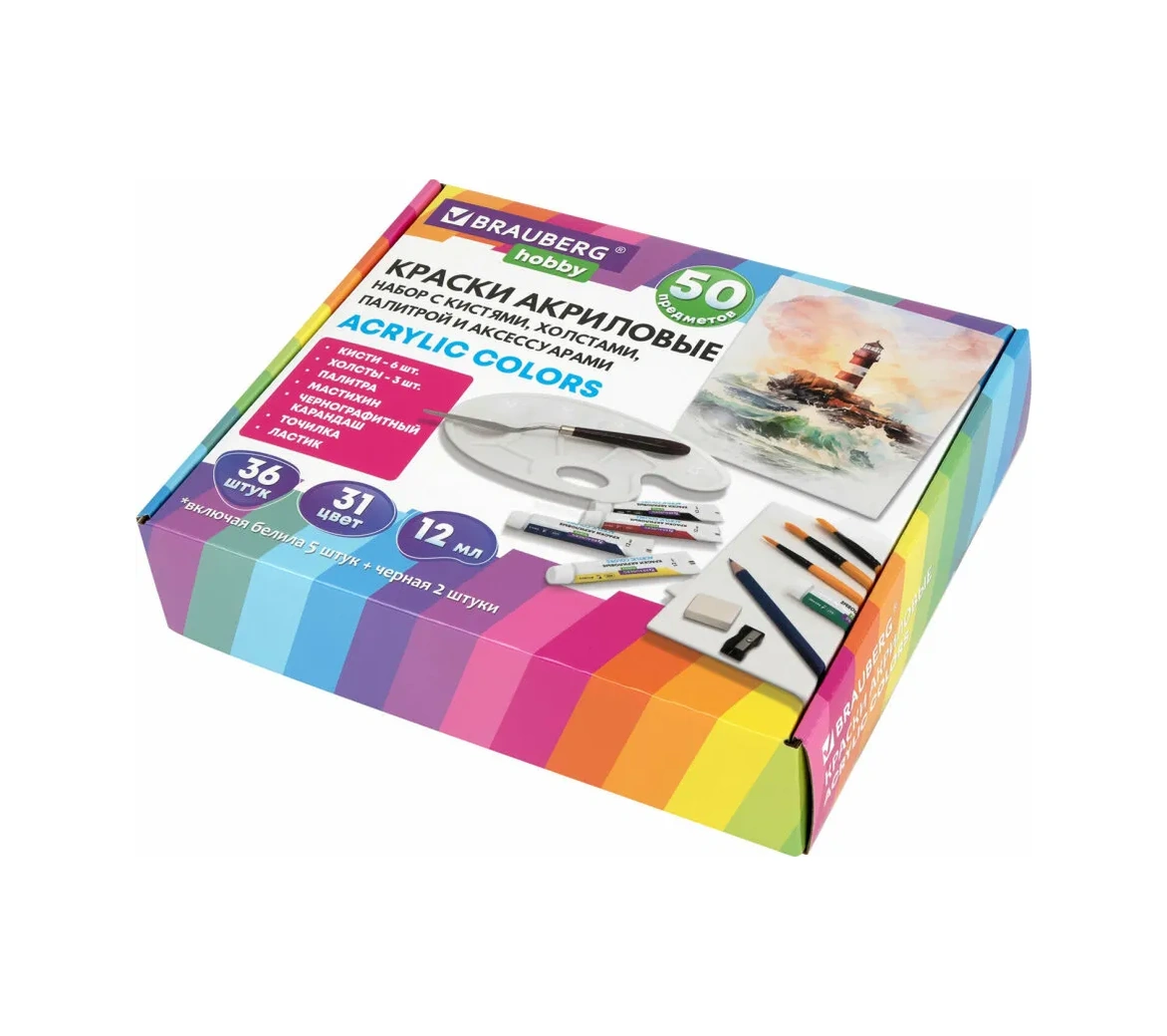 Brauberg 36 Adet Akrilik Boya Sanatçı Seti, Tuval Ve 50 Parça Fırça 330793927