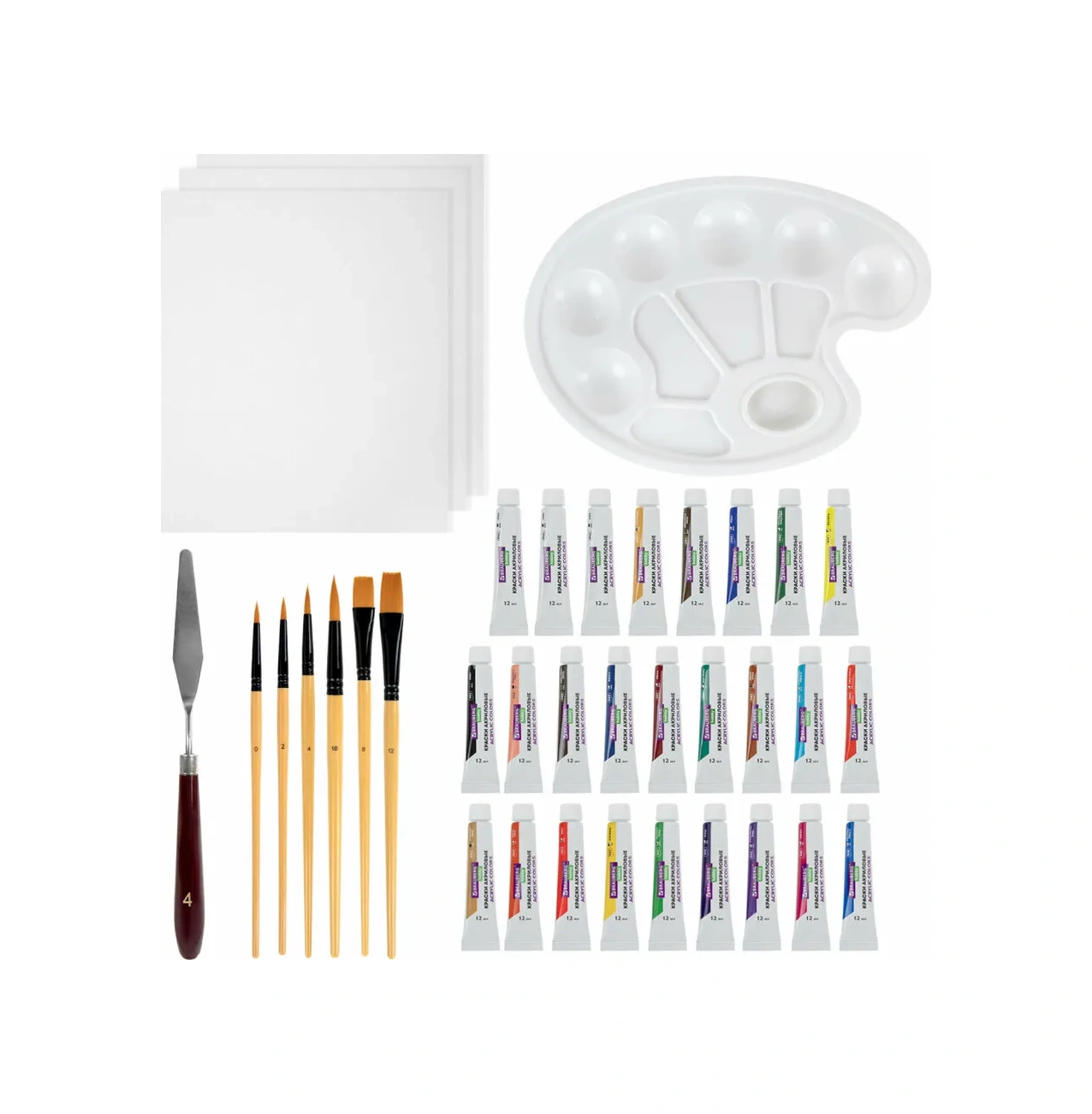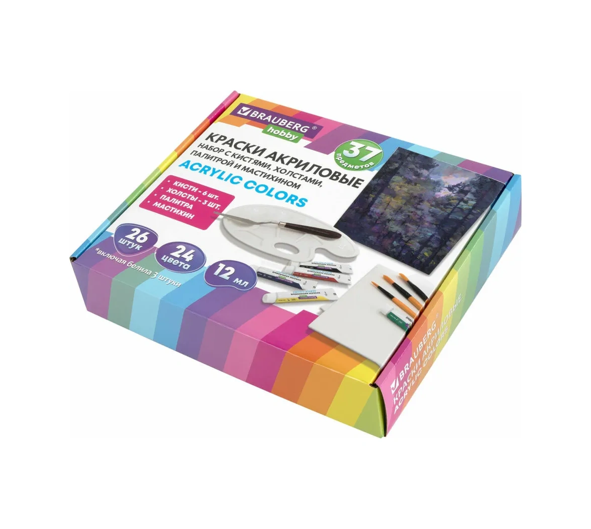 Brauberg Akrilik Boyalar 26 Adet Sanatçı Seti Tuvalleri Fırçalar 37 Parça 330729151