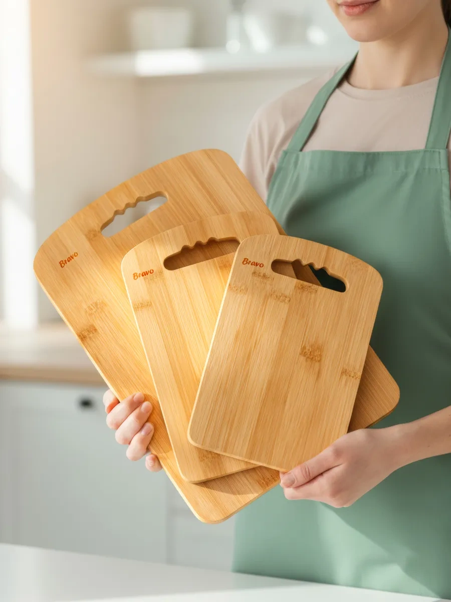 Bravo 3 Parçalık Kesim Ve Servis İçin Ahşap Kesme Tahtası Seti 179716712 Bej