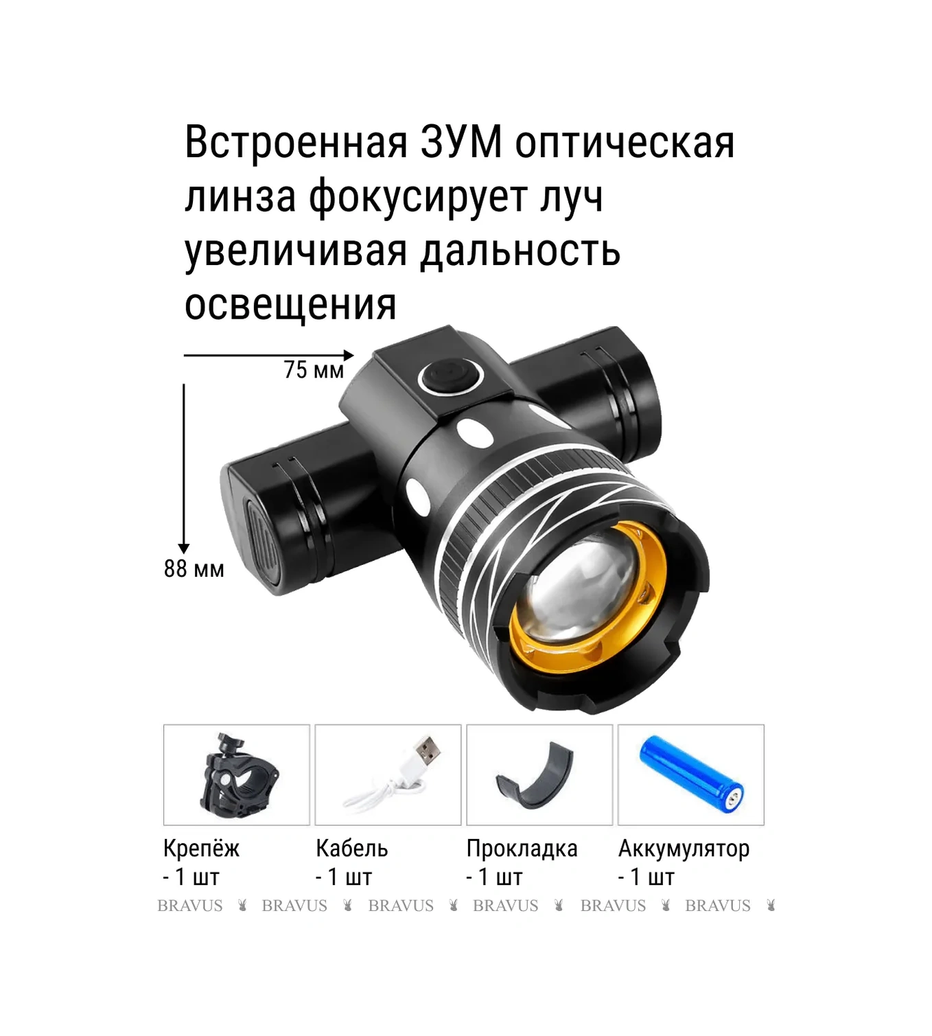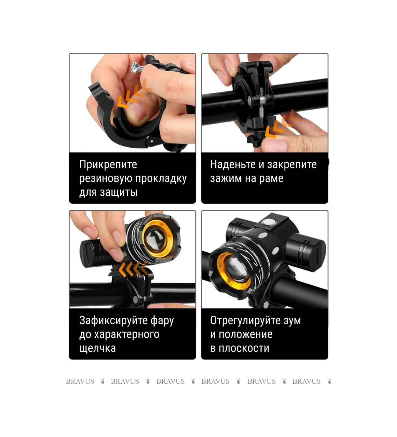 Bravus Parlak Bisiklet Farı, Led Ampul, Usb Şarjlı Akkolu Şarj Edilebilir 153976393 Siyah