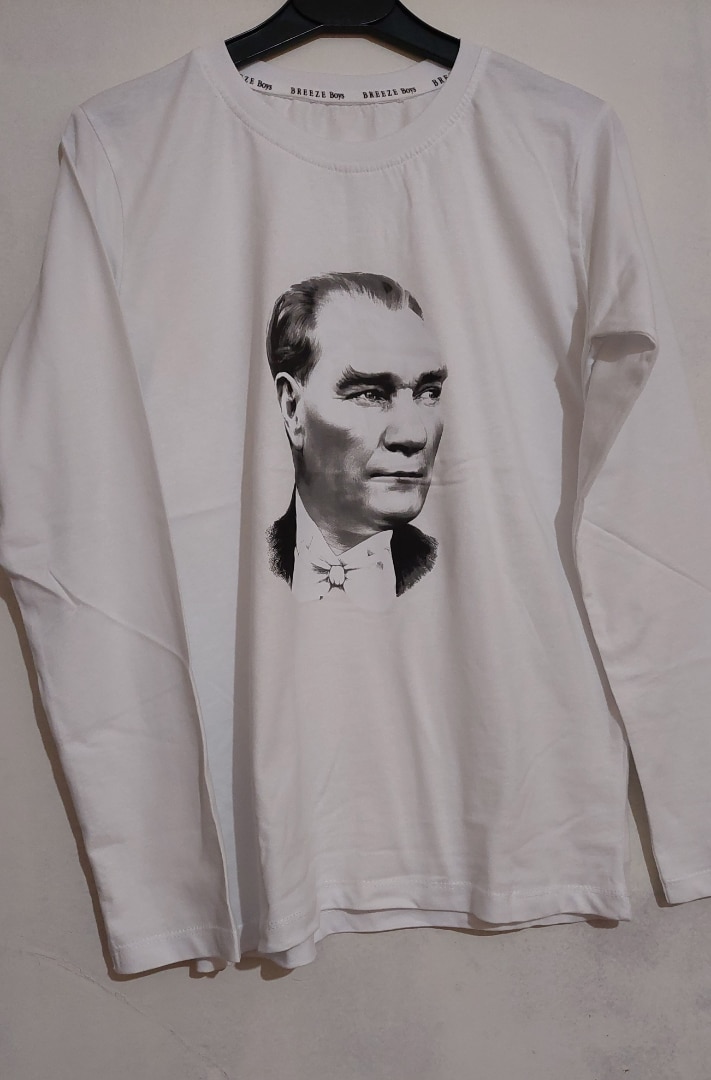 Breeze Atatürk Baskılı Uzun Kollu Tişört 5-14 Yaş, Beyaz-beyaz Beyaz