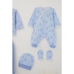 Breeze Erkek Bebek Hastane Çıkışı 8 Li Sevimli Ayıcık Figürlü Yıldız Desenli 0-3 Ay, Mavi Mavi