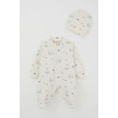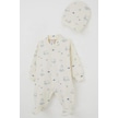 Breeze Erkek Bebek Patikli Tulum Sevimli Deniz Hayvanları Desenli 0-6 Ay, Krem Krem