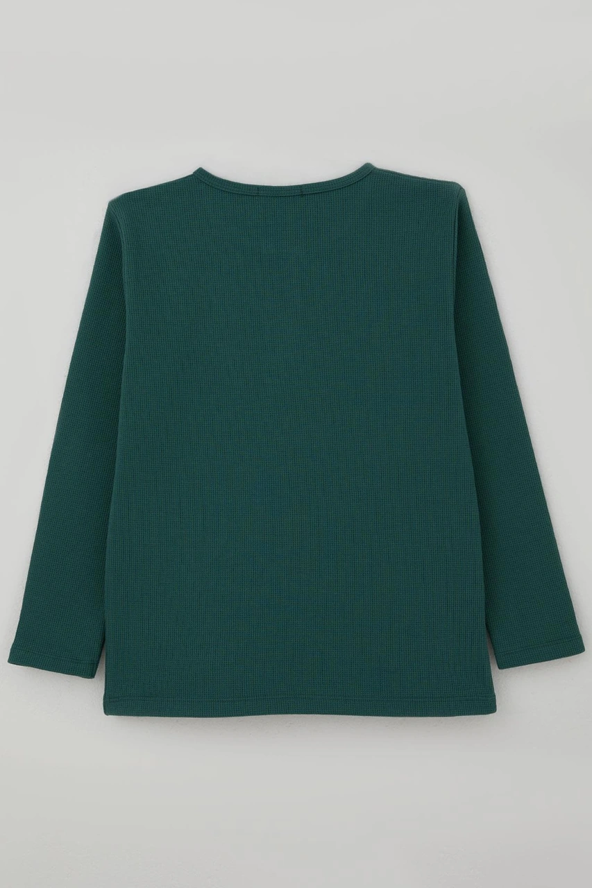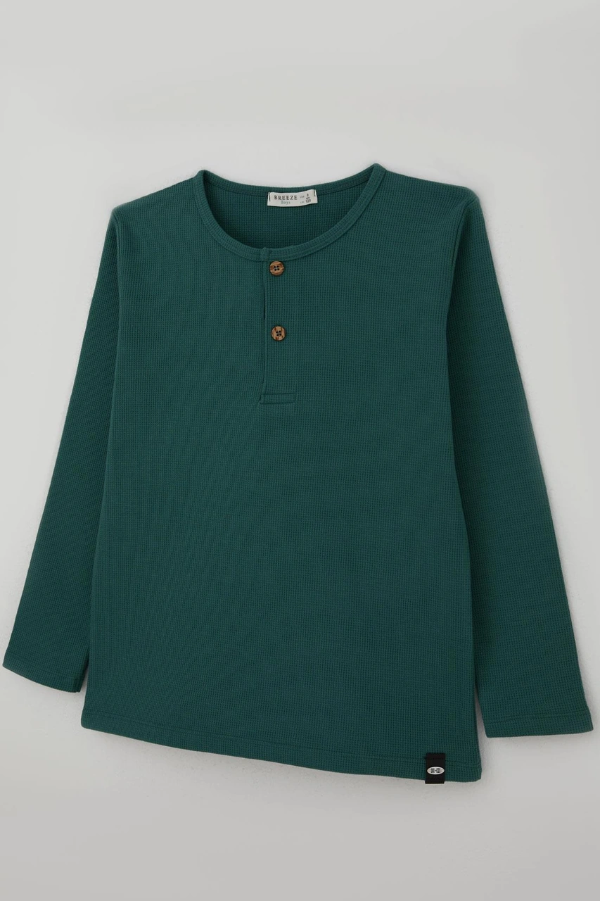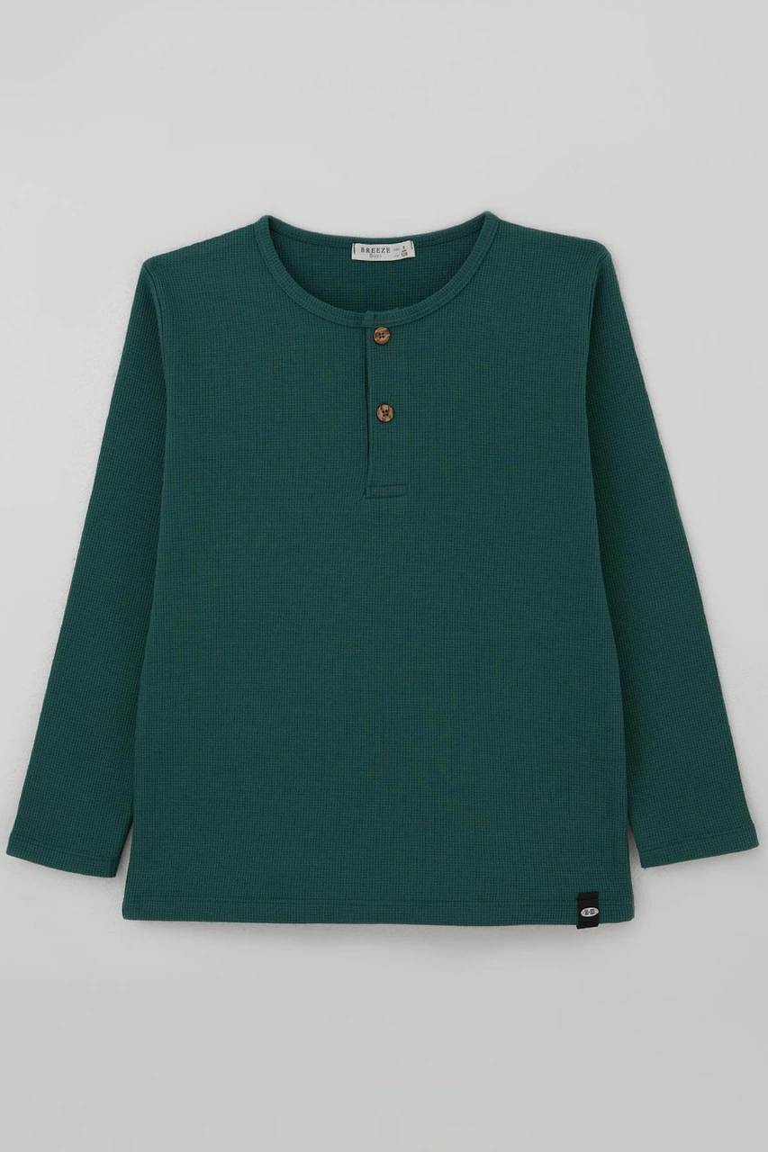 Breeze Erkek Çocuk Uzun Kollu Tişört Düğme Detaylı 4-8 Yaş, Petrol Yeşili Petrol Yeşili