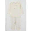 Breeze Kız Bebek Pijama Takımı Omuzdan Patlı Yaka Kısmı Fırfırlı Yazı Nakışlı 4 Ay-1 Yaş, Krem Krem