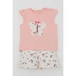 Breeze Kız Bebek Şortlu Takım Çiçek Baskılı Kelebek Nakışlı Düğme Aksesuarlı 6 Ay-2 Yaş, Somon SOMON