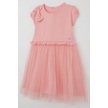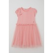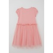 Breeze Kız Çocuk Elbise Bel Kısmı Fırfır Detaylı Omuzu Fiyonk Aksesuarlı 4-8 Yaş, Pembe Pembe