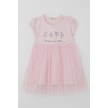 Breeze Kız Çocuk Elbise Çiçek Baskılı Tüllü Fiyonk Detaylı 1.5-5 Yaş, Pembe Pembe