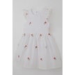 Breeze Kız Çocuk Elbise Çiçek Nakışlı Güpür Detaylı 3-7 Yaş, Ekru Ekru