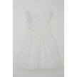 Breeze Kız Çocuk Elbise Çiçek Nakışlı Güpürlü Fırfır Detaylı Arkası Fermuarlı 7-12 Yaş, Ekru Ekru
