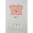 Breeze Kız Çocuk Elbise Sevimli Flamingo Nakışlı Tüllü 4-8 Yaş, Somon SOMON