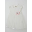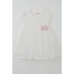 Breeze Kız Çocuk Elbise Tüllü Simli Fiyonk Aksesuarlı 2-6 Yaş, Ekru Ekru