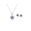 Brezza Lusso Jewelry Ametist Taşı Kalp Kadın Gümüş Kolye Küpe Seti 45 CM