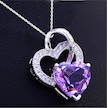 Brezza Lusso Jewelry Gümüş Ametist Taşlı Çift Kalp Kadın Gümüş Kolye 45 CM