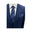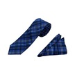 Brianze Mavi - Beyaz Ekose Desen Kravat Mendil Set Mavi