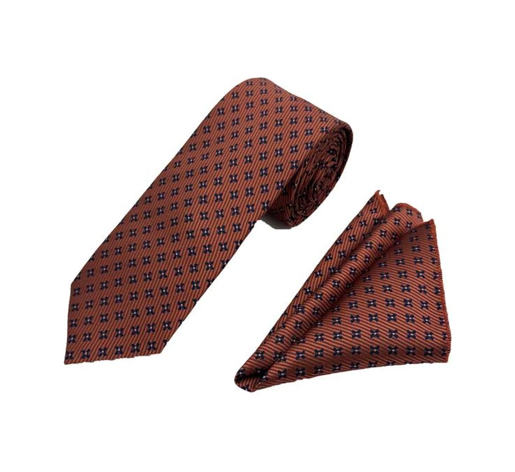 Brianze Taba Lacivert Desenli Kravat Ve Mendil Set Taba