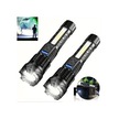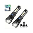 Brightnova 2li Usb Şarjlı El Feneri Flashlight 350 Lümen 7 Mod Xp50 Cob Yan Lamba 300m Uzun Menzil Kampçılık Acil Durum 2pcs Altın