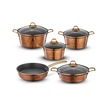 Brioni Copper 9 Parça Yanmaz Yapışmaz Bakır Görünümlü Granit Tencere Seti Bakır