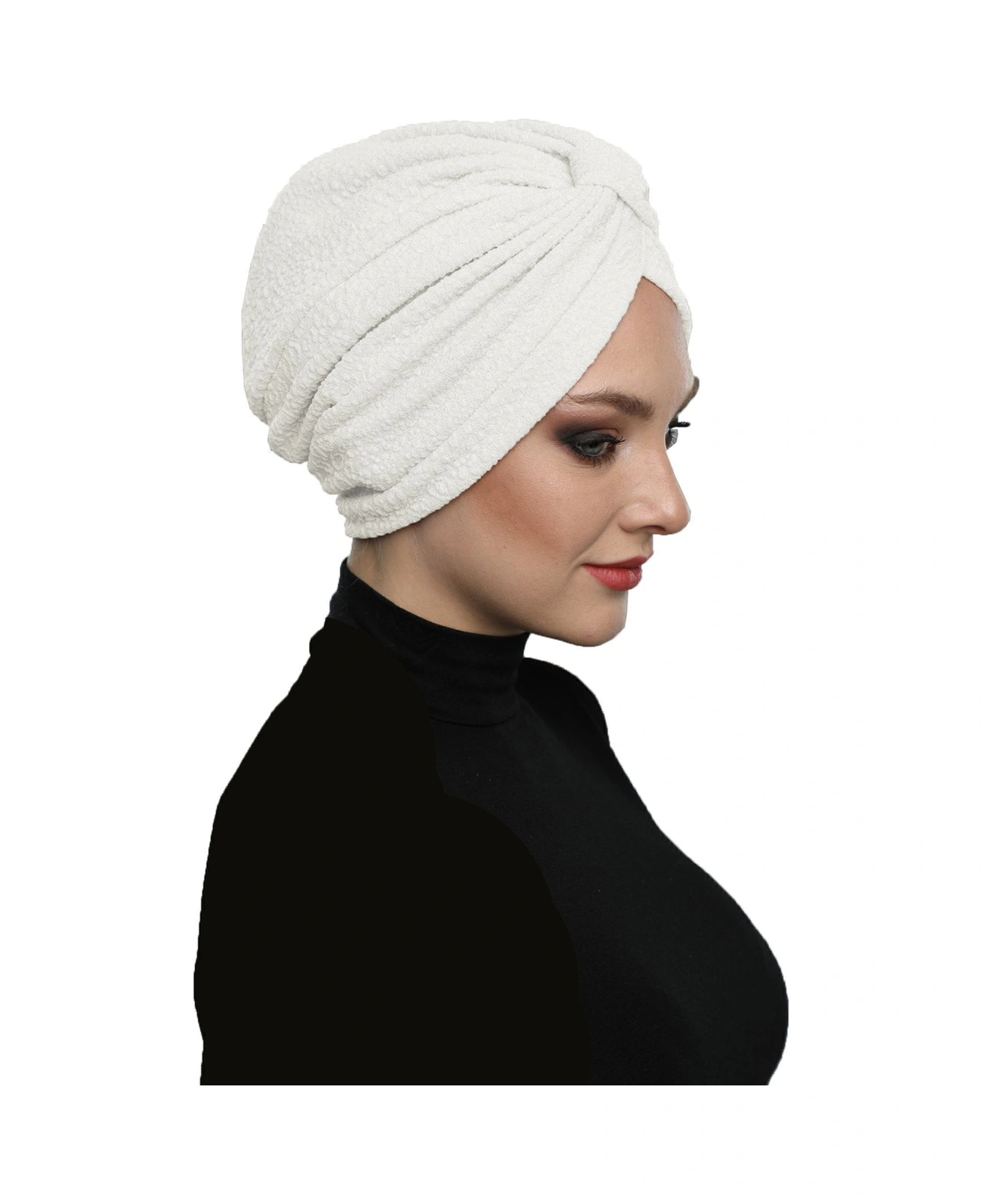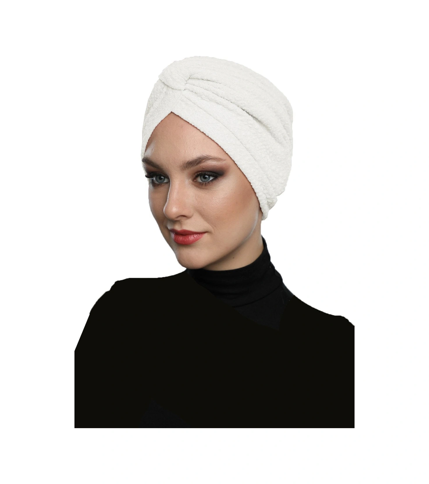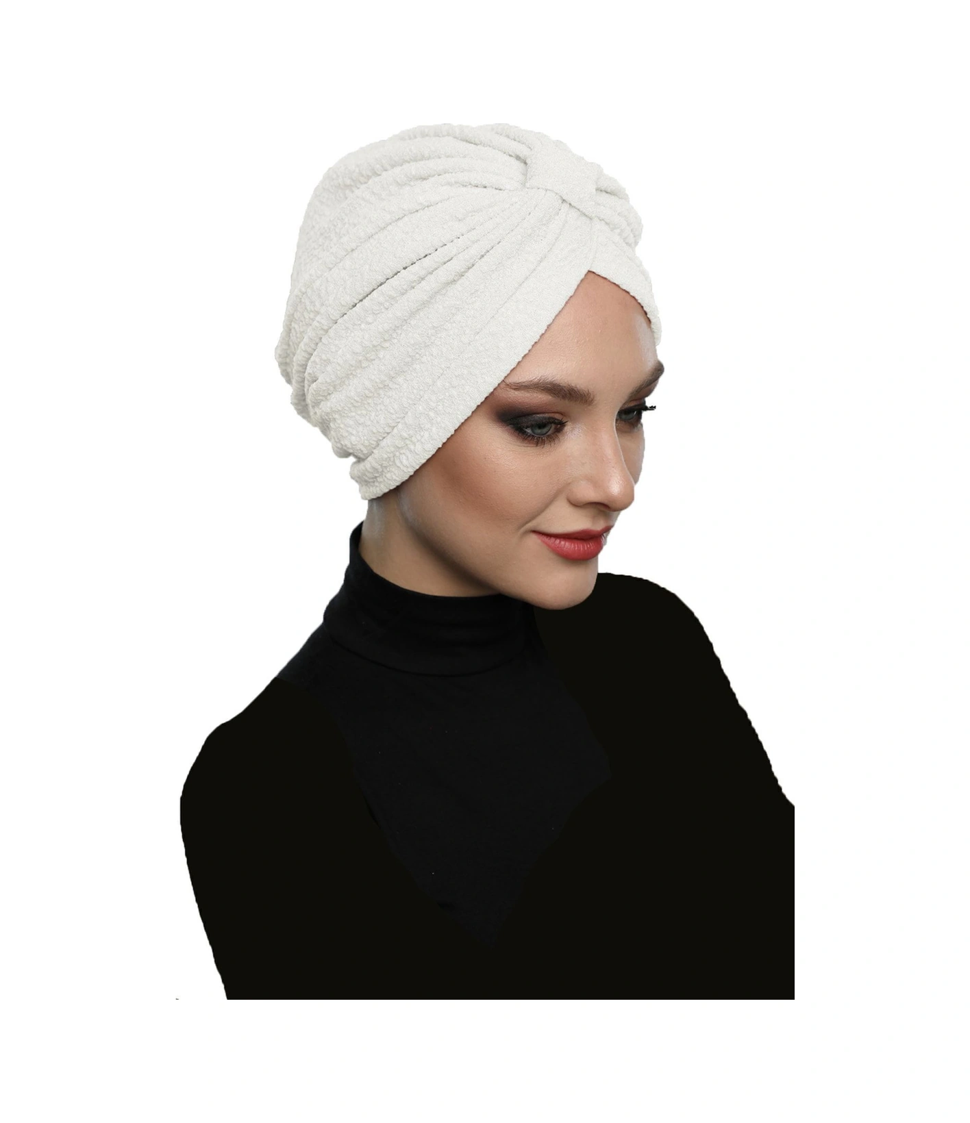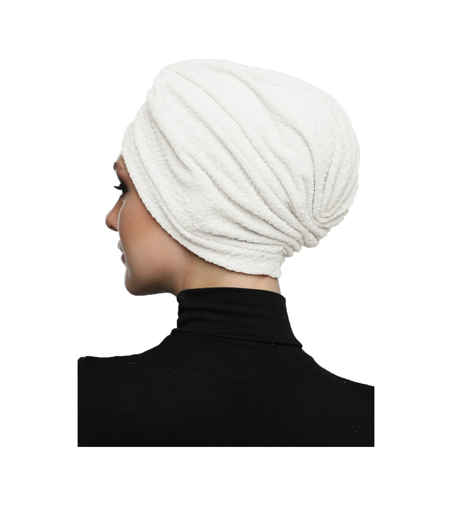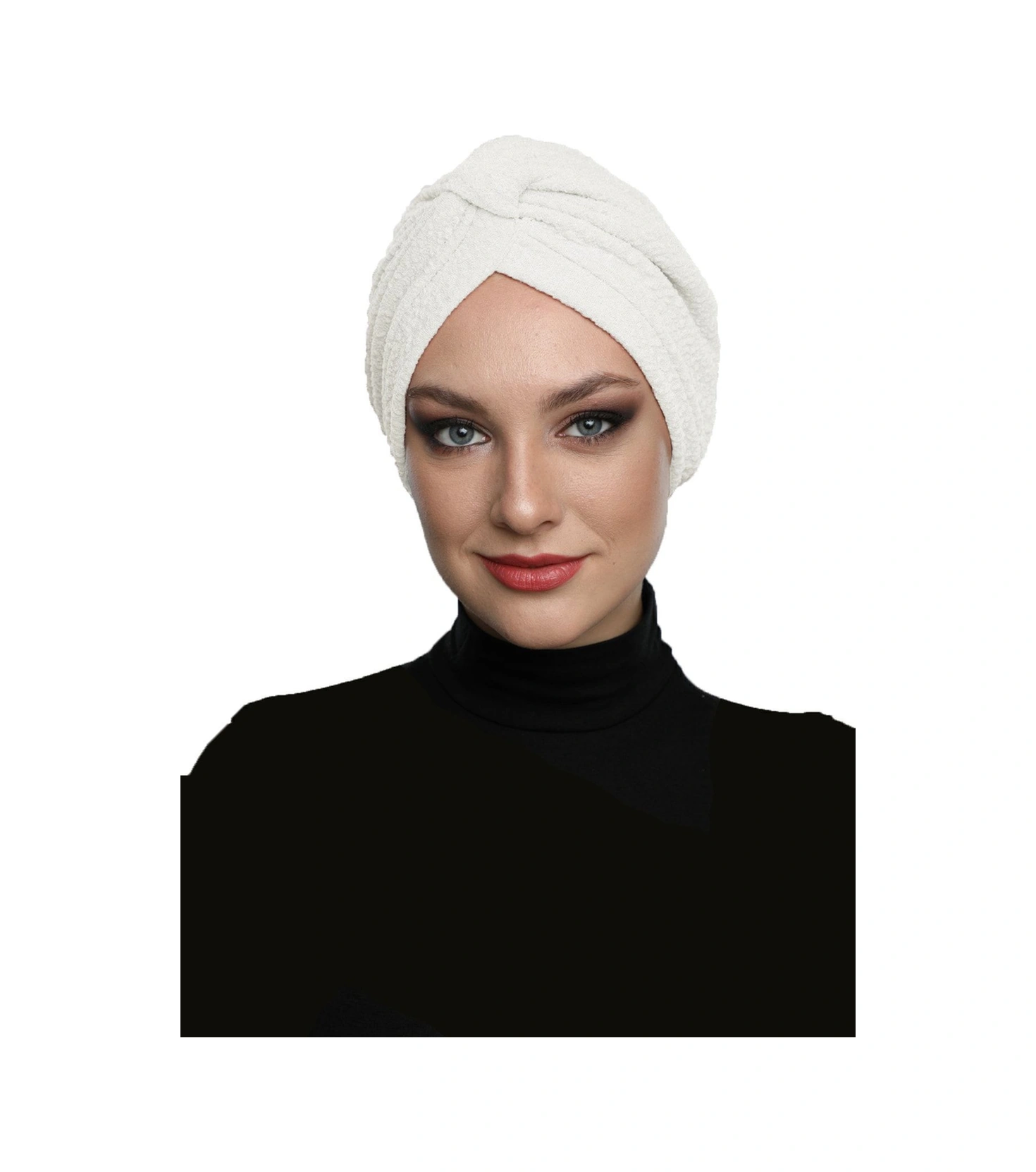 Brokar Bantlı Krem Astarlı Hazır Türban Tesettür Bone Krem
