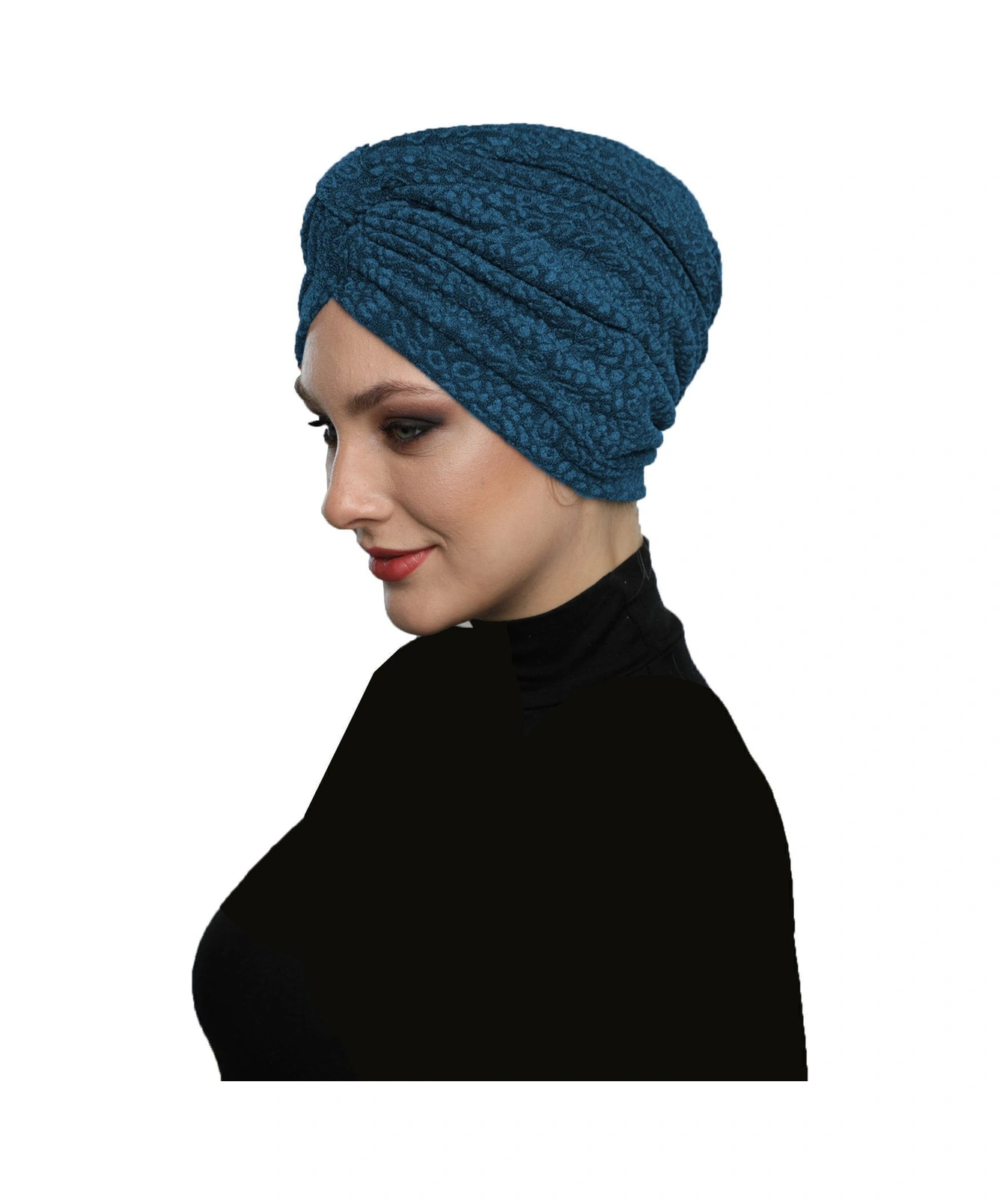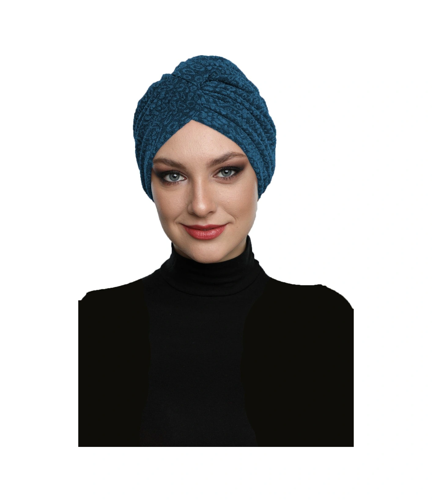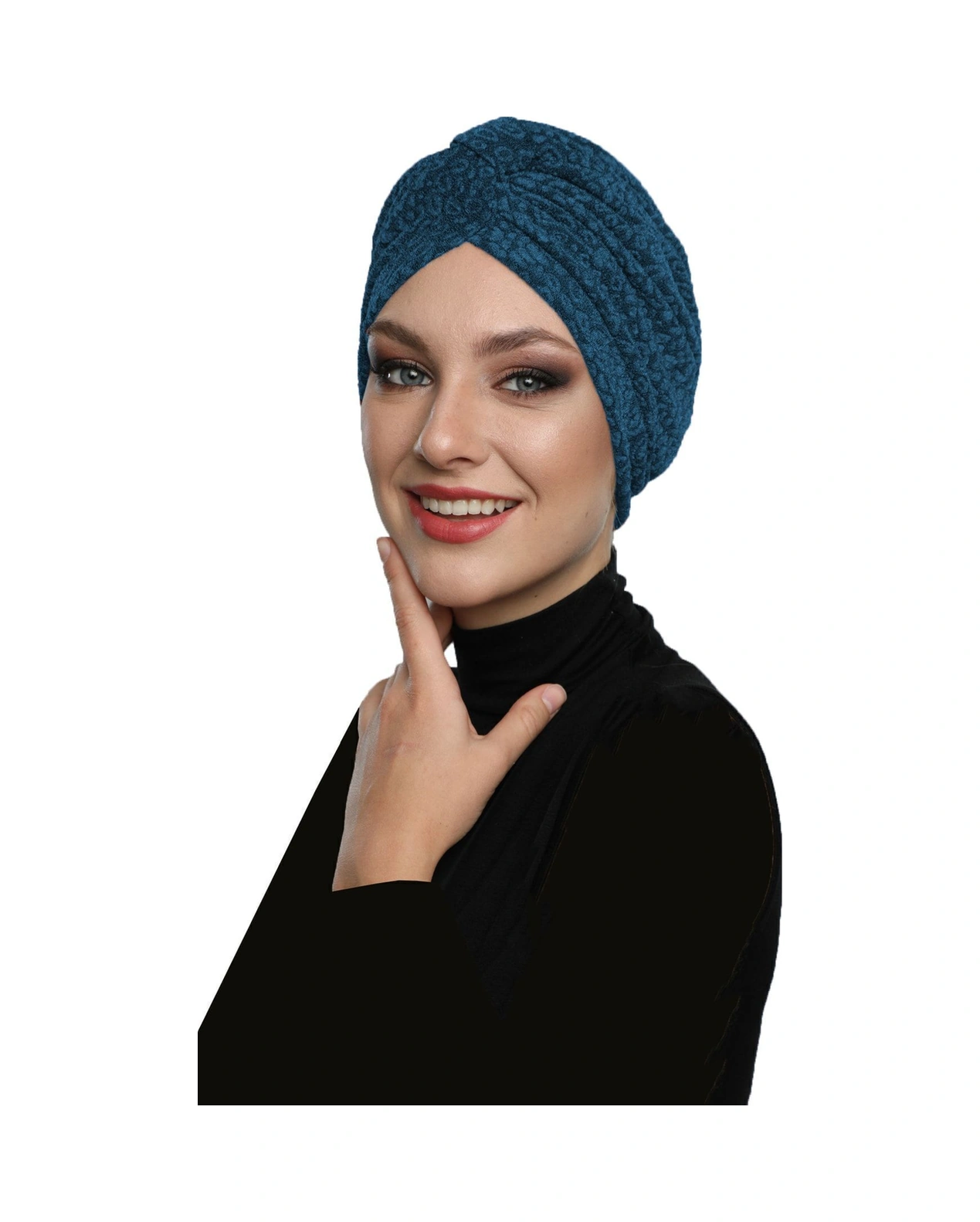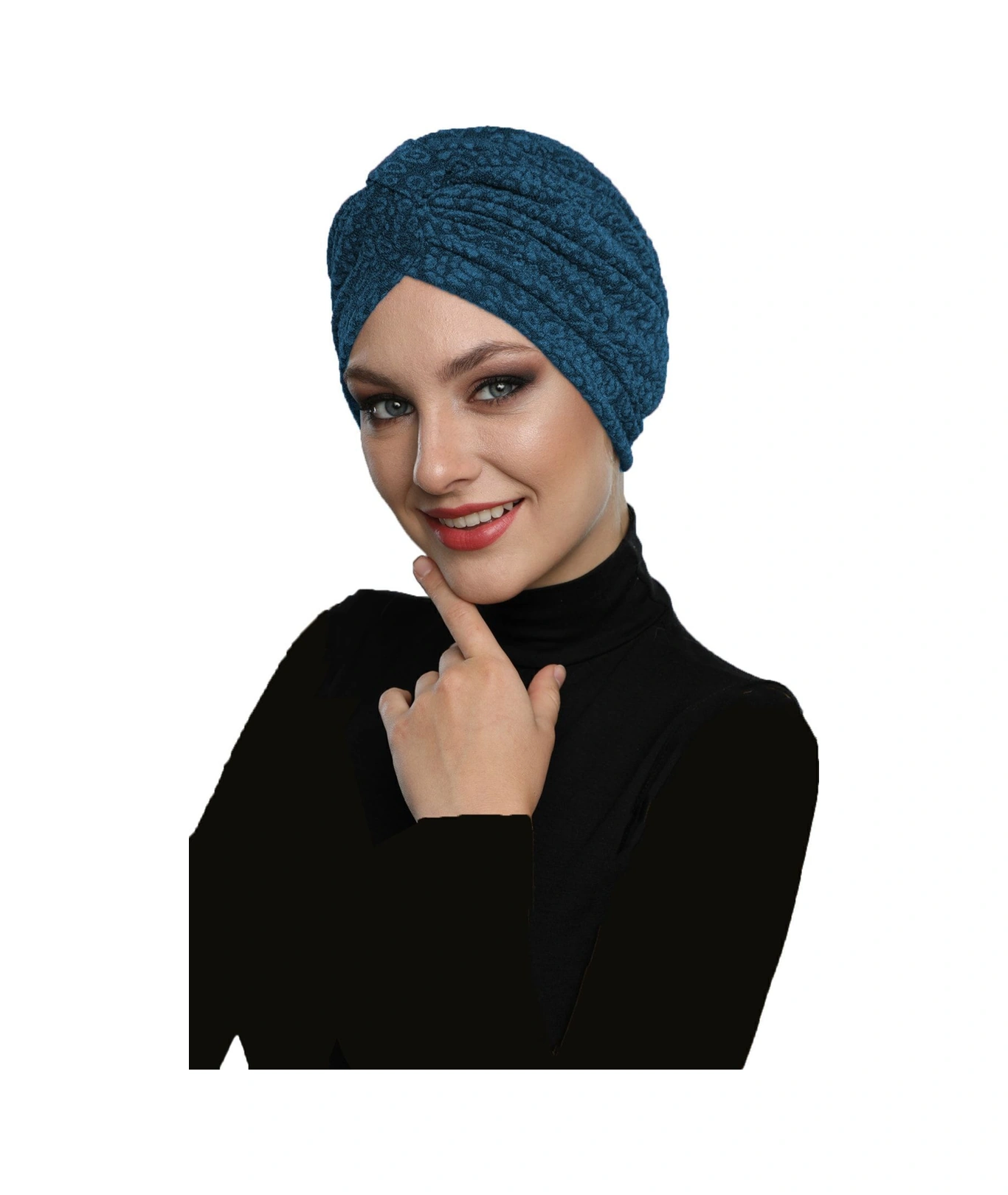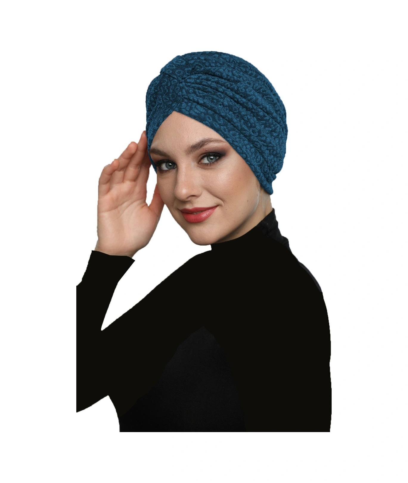 Brokar Bantlı Petrol Astarlı Hazır Türban Tesettür Bone Petrol